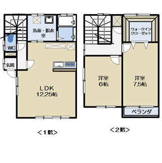 2LDK( 洋7.5、洋6、LDK12.25 )