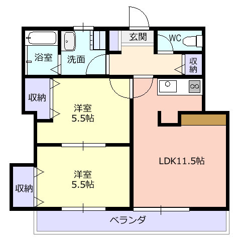 2LDK( 洋5.5、洋5.5、LDK11.5 )